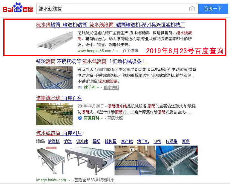 流水線滾筒 百度(PC)自然排名第1名